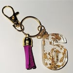 Handmade # Keychain with gold flakes infused into the design and tassel.
