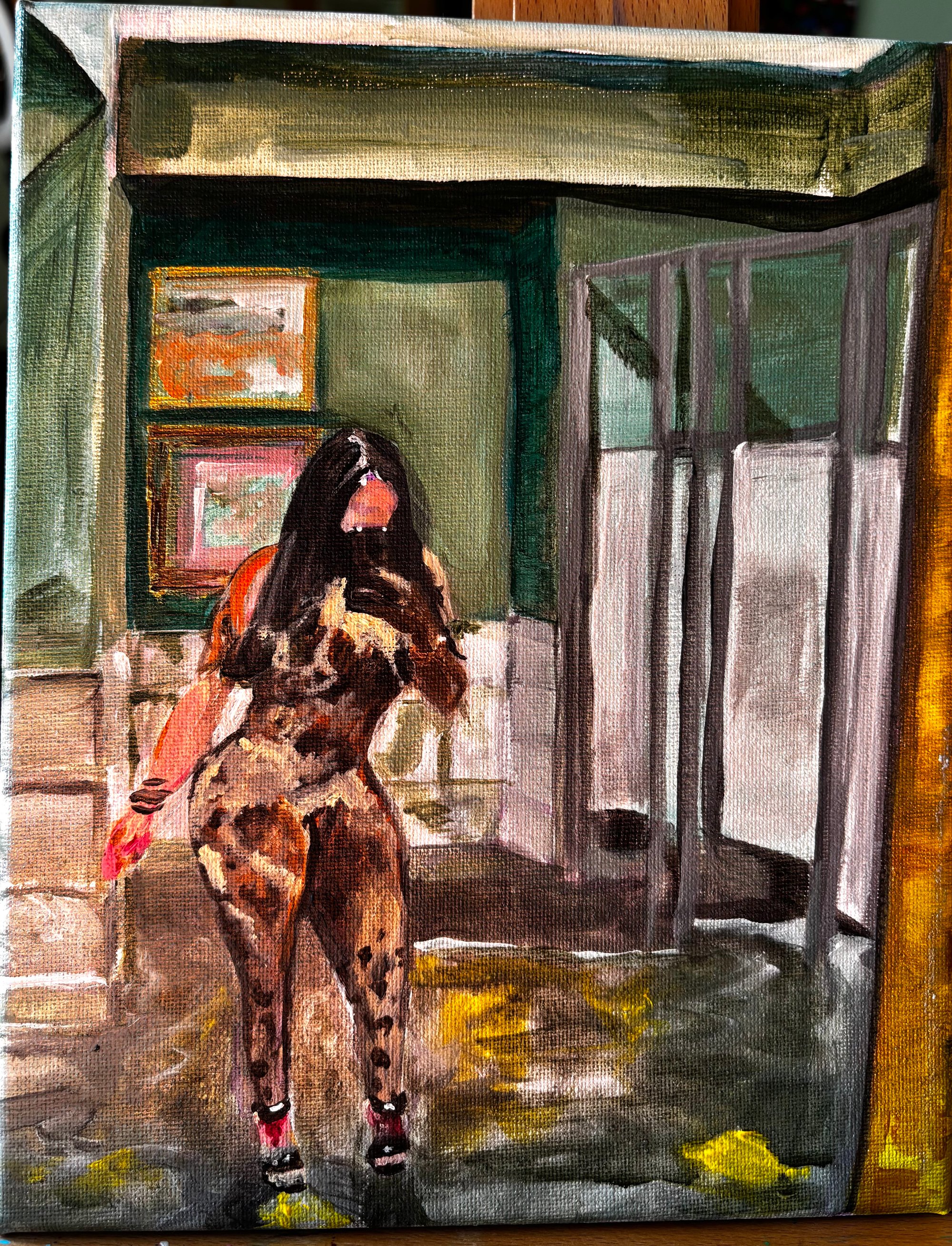 8"x 10"pre-order for all the fly girls. This painting is about That bathroom pic that every fly girl takes and the energy behind it.