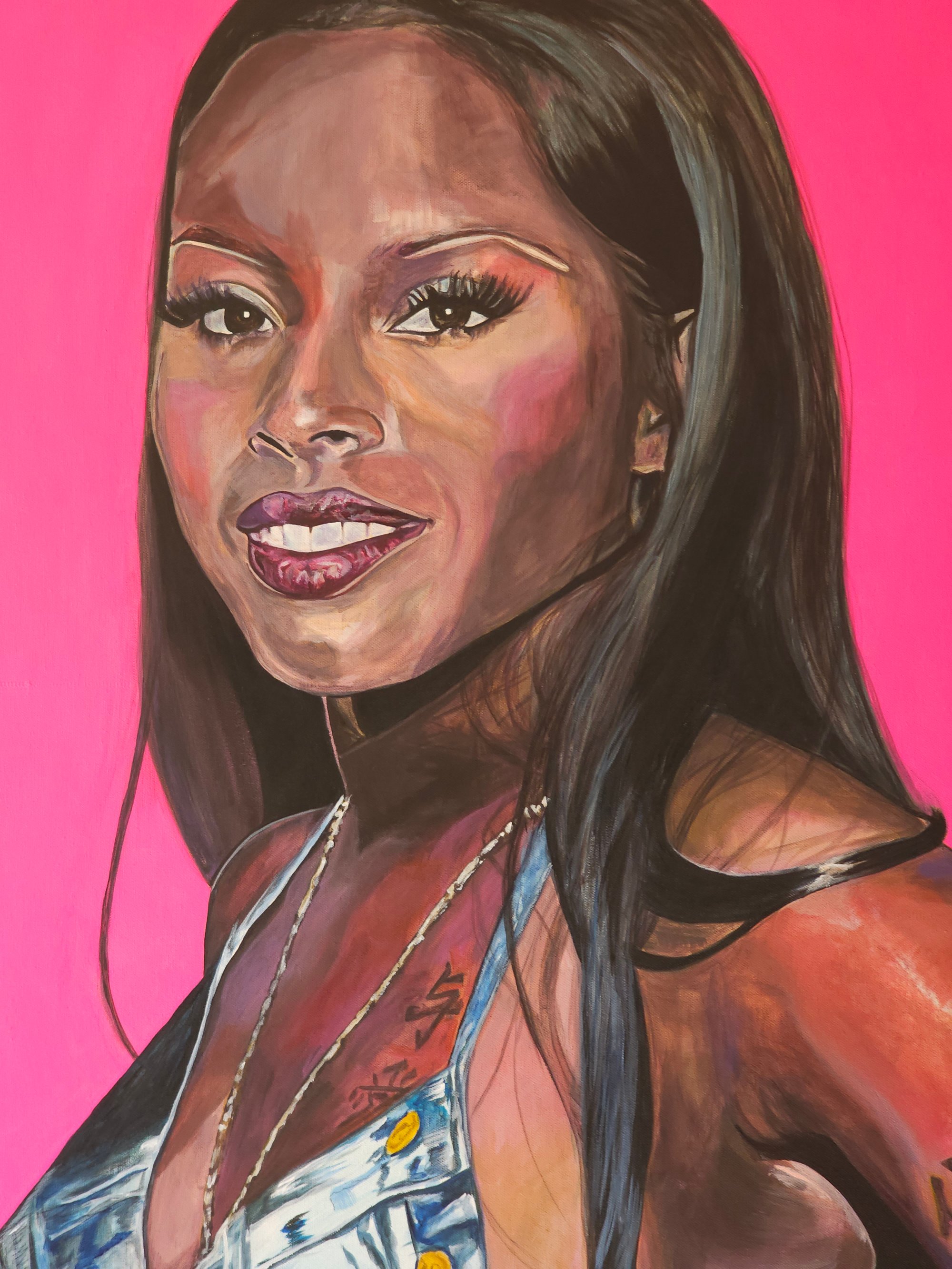 *This piece was inspired by a moment when Nicki Minaj shared a photo of Foxy Brown and said she wanted it as a painting. As someone who grew up on Foxy’s music, I felt the same — her presence, her voice, her energy were iconic. Creating this painting was both a tribute to one of the legends I grew up listening to and a celebration of her influence on hip-hop culture. While I originally hoped to get the original into Nicki’s hands, this piece has become one of my favorites — a blend of personal nostalgia and cultural respect."