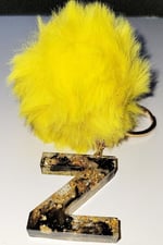Handmade Keychain with gold flakes infused into the design and fur charm.